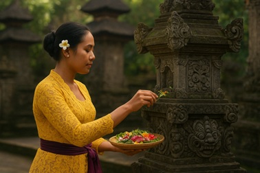 ウブドを歩いている時にトリ・ヒタ・カラナがバリ人の生活の中心になっていることを感じました。道沿いには、家の前に整然と並べられたチャナン・サリ(供物)、各敷地に建つ小さな寺院、そして地元の人々の心からの温かい笑顔が見えました。小さな屋台の店主と話した時でさえ、彼はこう言いました。「人生はバランスが大切だよ、君。人に優しくし、自然を守れば、幸運も自然と訪れるものだ」その言葉はシンプルでしたが、その意味は深く心に響くものでした。