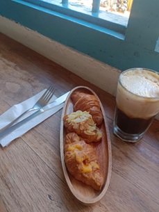 ナディ・ヘリテージのメニューはコーヒーとトーストがメインで、値段はRp20,000~Rp30,000とお手ごろな値段です。私はKopi Gula Aren(コピ・グラ・アレン、「グラ・アレン」とはサトウヤシの木の樹脂からできた砂糖のことで、「コピ」はインドネシア語でコーヒーという意味です。)とミニ・クロワッサン・プレートを注文しました。コーヒーは程よい甘さで、クロワッサンもふんわりしていて美味しかったです。ガッツリ食べたい方には向いていませんが、デンパサールを観光したあとちょっと一息つきたいときに寄るのに最適な場所だと思います。