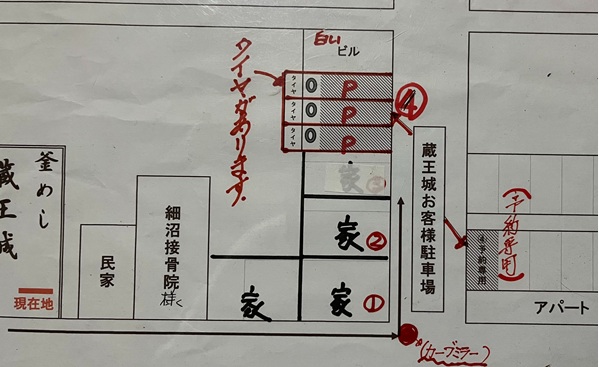 駐車場が少し離れた場所にあり、分かりにくいため、初めての方はご注意ください。